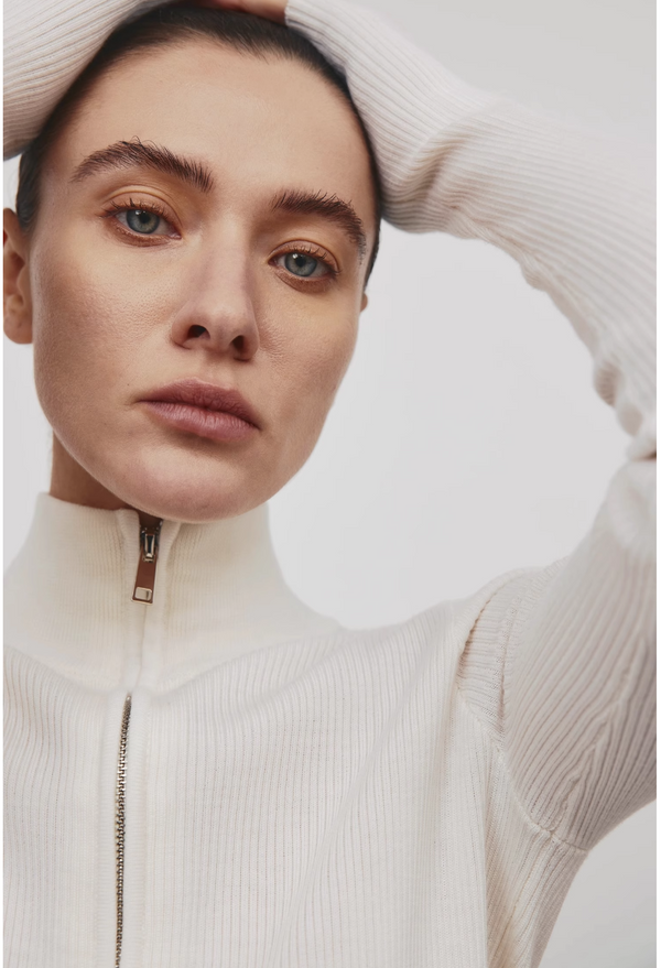MM COZY ZIPPER COLLAR SWEATER - OFF WHITE