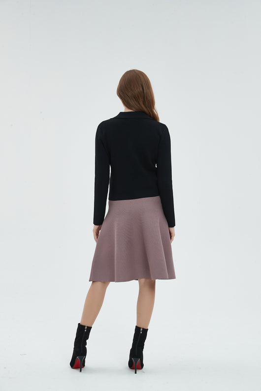 Fit and Flare shape. Some describe this as a Circle skirt or Skater Skirt.