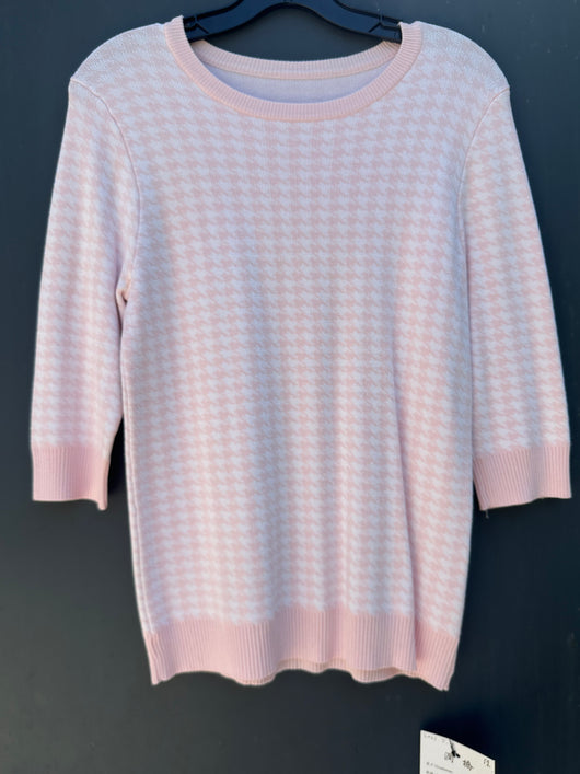 Lightweight 3/4 sleeve pink houndstooth top. Super soft and sensory friendly