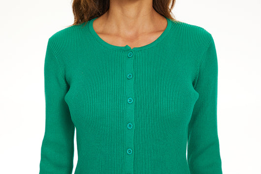 MM RIBBED CARDIGAN - KELLY GREEN